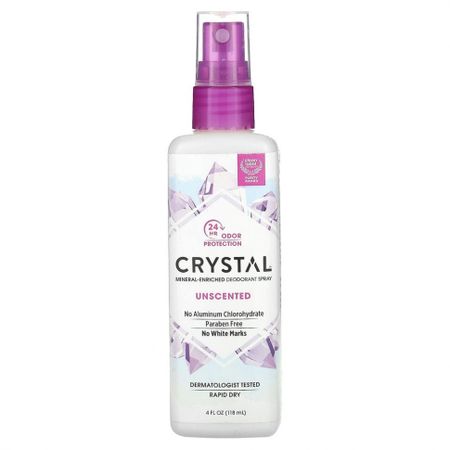 Действует 24 часа Не содержит хлоргидрата алюминия Не содержит парабенов Продукт прошел дерматологические исследования Быстро высыхает и не оставляет белых пятен Гипоаллергенный продуктМинеральный аэрозольный дезодорант Crystal изготовлен из минеральных солей. Он быстро высыхает, предотвращая возникновение запаха пота, и создает невидимый защитный барьер для бактерий, которые вызывают неприятный запах. Этот эффективный аэрозольный дезодорант прекрасно подходит как для женщин, так и для мужчин. Он предотвращает возникновение неприятного запаха, не имея при этом агрессивных химических веществ и отдушек в составе. Отлично подходит для нанесения на труднодоступные зоны (например, спину, грудь и ступни). Этот дезодорант имеет форму спрея и наносится неконтактно: вещество необходимо лишь распылить не необходимые участки кожи. Предотвращает возникновение неприятного запаха в течение 24 часов. Не имеет отдушек, не липнет и не оставляет пятен.