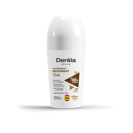 Овсяный дезодорант -антиперспирант от Derela Spain обеспечивает до 48 часов клинически протестированной защиты от пота. Его безалкогольная формула с экстрактом овса помогает ухаживать за кожей. Веганская формула. Дерматологически протестировано.