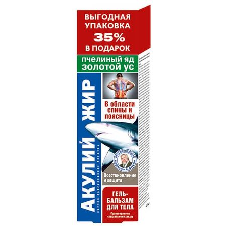 Главная » Красота и здоровье Гель-бальзам для тела с пчелиным ядом и золотой усом Акулий Жир туба 125мл Просмотров 3 КоролевФарм ООО