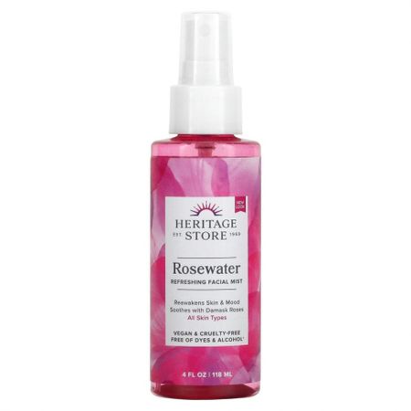 Heritage Store, розовая вода, освежающий спрей для лица, 118 мл (4 жидк. унции)
