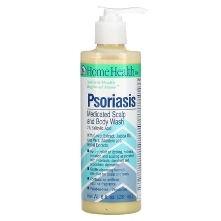 Natural Health Begins at Home™Содержит 2% салициловую кислотуС экстрактом моркови, маслом жожоба, алоэ вера, аллантоином и экстрактами травФормула эффективного мягкого очищения для кожи головы и телаБез искусственных красителей и ароматизаторов Не содержит парабеновГарантированное качество — продукт прошел лабораторные испытанияБез ГМОВегетарианский продуктПродукт не тестируется на животных Для облегчения зуда, покраснения, раздражения и шелушения, вызванных псориазом, перхотью и себорейным дерматитом.Оздоравливающий очищающий гель для кожи головы и тела помогает бороться с зудом, покраснением, раздражением и шелушением, вызванными псориазом, перхотью и себорейным дерматитом. Активный ингредиент, салициловая кислота, объединен с успокаивающей и увлажняющей смесью нежных питательных веществ растительного происхождения, включая гель алоэ вера, экстракт моркови, экстракт ромашки, экстракт эхинацеи и масло жожоба.Компания Home Health™ потратила несколько лет на исследования, чтобы создать действительно эффективные продукты для личной гигиены на основе традиционных натуральных ингредиентов. Компания Home Health™ оправдает ваши ожидания и доставит натуральные и качественные продукты для здоровья вашей семьи.Рекомендации по применению. Для облегчения таких симптомов:зудраздражениепокраснениешелушение, вызванное псориазом
