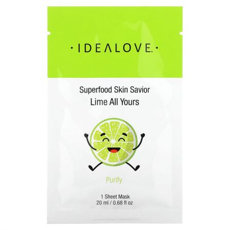 Главная » Красота и здоровье Idealove, маска для кожи с суперфудами, лайм, 1 тканевая маска, 20 мл (0,68 жидк. унции) Просмотров 7 Idealove