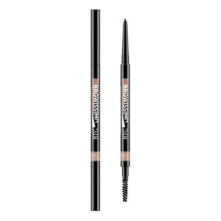 Карандаш с ультратонким грифелем идеально точно прорисовывает недостающие волоски по линии роста бровей, ювелирно заполняет пустоты, создает эффект густых натуральных бровей. Супер стойкая формула сохраняет пигмент на бровях 24 часа, выдерживает воздействие влаги и пота. Моделирующая щеточка расчесывает и укладывает брови, придает им желаемую форму и одновременно растушевывает пигмент. Текстура средней мягкости легко наносится, не травмирует кожу, хорошо растушевывается. 5 натуральных оттенков идеально корректируют и выравнивают цвет, максимально естественно смотрятся на бровях. Карандаш не требует затачивания, что делает его удобным в использовании.