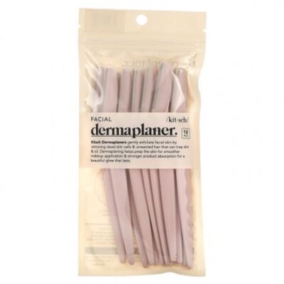 Описание Бережно удаляет омертвевшие клетки кожи и нежелательные волосы на лицеДелает кожу более гладкой, яркой и ровнойМакияж наносится более гладко и равномерноОтлично подходит для точного формирования и улучшения бровейЛезвие изготовлено полностью из нержавеющей сталиДеликатно относится к вашей коже и волосамУпаковка из 12 предметовБережно отшелушивает кожу и удаляет нежелательные волосы на лицеПрецизионное моделирование и улучшение бровейЭтичный продуктСредства Kitsch Dermaplaner нежно отшелушивают кожу лица, удаляя омертвевшие клетки кожи и нежелательные волосы, которые могут задерживать грязь и жир. Дермапланирование помогает подготовить кожу для более гладкого нанесения макияжа и более сильного впитывания продукта, обеспечивая красивое и стойкое сияние. Ингредиенты Состав материала:88% полистирол (ПС), 9% полипропилен (ПП), 3% нержавеющая сталь. Предупреждения Хранить в недоступном для детей месте.Опасность удушья — данный продукт / упаковка не является игрушкой. Во избежание опасности удушья хранить в недоступном для младенцев и маленьких детей месте. Не помещайте в детские кроватки, коляски или манежи.