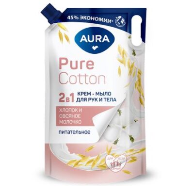 Главная » Красота и здоровье Крем мыло 2в1 Aura для рук и тела хлопок и овсяное молочко 850 мл Просмотров 7 AURA