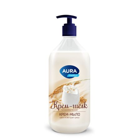 Крем-мыло AURA Silky Cream с экстрактами шелка и рисового молочка бережно очищает, не вызывая сухости и раздражения, окутывает кожу нотками ненавязчивого нежного аромата!Рисовое молочко интенсивно питает, успокаивает кожу, придавая невероятное ощущение нежности и комфорта.Экстракт шелка дарит коже ощущение гладкости, превосходно увлажняет и смягчает ее. Результат – кожа рук мягкая и сияющая как шелк!