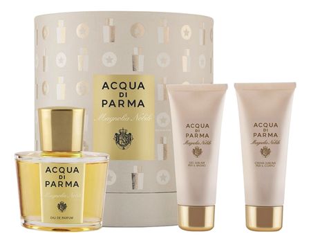 Главная » Красота и здоровье Magnolia Nobile: набор (п/вода 100мл + гель д/душа 75мл + крем д/тела 75мл) Просмотров 10 Acqua di Parma