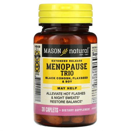 Описание Компания основана в 1967 годуПищевая добавка Продукт прошел лабораторные испытания и имеет гарантию качества Mason Регистрация текущей надлежащей производственной практики (cGMP)Без глютенаМожет помочь: Снимает приливы жара и ночное потоотделение, восстанавливает балансФормула с замедленным высвобождением для приема один раз в день, которая может помочь облегчить приливы и ночную потливость. Рекомендации по применению Взрослым в качестве пищевой добавки принимать одну капсулу с замедленным высвобождением в день, желательно во время еды. Ингредиенты Микрокристаллическая целлюлоза, стеариновая кислота, аравийская камедь, мальтодекстрин, стеарат магния, фармацевтическая глазурь, силикат магния.Содержит растительные продукты, собранные в естественных условиях. Возможны естественные изменения цвета продукта.Сертификация аллергенов — этот продукт может содержать сою.Гарантировано не содержит сахара, крахмала, дрожжей, пшеницы, молочных продуктов, глютен, яиц, отдушка, искусственных ароматизаторов и красителей и консервантов. Предупреждения Перед началом применения во время беременности, кормления грудью, приема препаратов или при наличии каких-либо заболеваний следует проконсультироваться с врачом. При возникновении любых неблагоприятных реакций следует прекратить прием и обратиться к врачу.Хранить в недоступном для детей месте.Защита от вскрытия. Не используйте продукт, если защитная пленка повреждена.Хранить в сухом месте при контролируемой температуре 20–25 °C (68–77 °F). Пищевая ценностьРазмер порции: 1 капсула с замедленным высвобождением Количество в 1 порции% от суточной нормыКальций (карбонат кальция)196 мг15%Льняное семя (Linum usitatissimum)500 мг**Экстракт сои 40% (содержит 40 мг изофлавонов сои)100 мг**Экстракт черного кохоша (Cimicifuga racemosa) (корень) (стандартизированный до 2,5% тритерпеновых гликозидов)40 мг**** Суточная норма не определена.