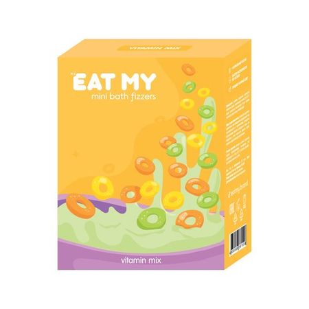 Кто сказал, что время завтрака – обязательно утром, а в ванной можно лежать только вечером? Живи в своём ритме!Мини-бомбочки EAT MY созданы, чтобы заряжать тебя энергией и хорошим настроением в любой момент: просто насыпь их в теплую воду, когда решишь принять ванну. В коробке 30 бомбочек, рассчитанных на 2-3 применения, но размер порции зависит только от тебя – чем больше, тем веселее! Разноцветные колечки окрасят воду в нежные цвета, наполнят воздух фруктовыми ароматами и позабавят тебя шипением своих пузырьков. У каждого цвета свой уникальный аромат: апельсин, лимон или лайм (в набор входит по 10 штук каждого цветааромата). Смешивай их по настроению или пробуй по очереди.Морская соль в составе мини-бомбочек снимает усталость и тонизирует кожу, а натуральные масла ухаживают и придают бархатистую мягкость. А чтобы твоя ванна стала максимально похожей на тарелку со сладким завтраком, мы добавили в наши колечки сухое молоко: растворяясь, оно насыщает кожу полезными витаминами и увлажняет ее. В упаковке 30 шт.Применение: добавить желаемое количество бомбочек в ванну, наполненную теплой (35-38 °C) водой, дождаться растворения; после купания ополоснуть кожу и ванну чистой водой.Состав: sodium bicarbonate, citric acid, corn starch, milk powder, sea salt, vitis vinifera (grape) oil, prunus amygdalus dulcis (sweet almond) oil, polysorbate 80, parfum, CI 15985, CI 47005, CI 19140, CI 42090, CI 47005