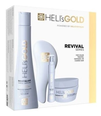 Главная » Красота и здоровье Набор для волос Revival Series (шампунь 300мл + маска 100мл + сыворотка 30мл + расческа) Просмотров 17 Heli’s Gold