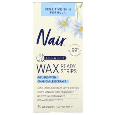 Главная » Красота и здоровье Nair, Восковые полоски для ног и тела, для чувствительной кожи, 40 восковых полосок + 6 салфеток Просмотров 6 Нэир