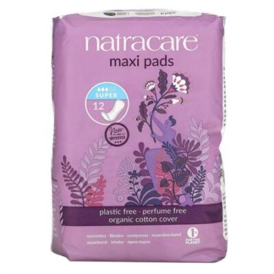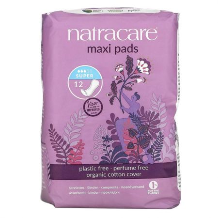 Natracare, Maxi, прокладки, поверхность из органического хлопка, супер, 12 штук