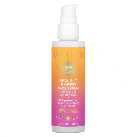 Главная » Красота и здоровье Pacifica, Прозрачная сыворотка для лица Sea & C, SPF 55, 50 мл (1,7 жидк. Унции) Просмотров 6 Пасифика