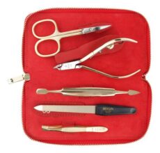 Маникюрный набор 902RED (ножницы универсальные + пилка металлическая 12,5см + пинцет скошенный + кусачки д/кутикулы + шабер двусторонний)