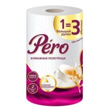 Полотенце бумажное Pero белое 2 слоя, 1 рулон, 264 листа, размер листа 23х12.5 см, 33 м