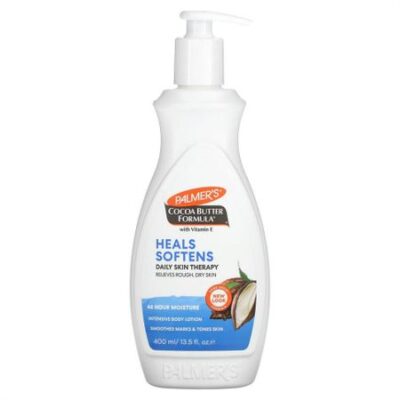 Ежедневное лечение кожи Лечит, смягчает Снимает грубую, сухую кожу Увлажнение на 24 часа Разглаживает и тонизирует кожу Рекомендуется дерматологами*Богатый, роскошный повседневный лосьон для тела Butter Formula от Palmer’s обеспечивает глубокое увлажнение кожи. Эта бархатистая мягкая формула быстро впитывается, создавая защитный барьер, который задерживает влагу. Этот богатый смягчающими веществами лосьон эффективно лечит и смягчает кожу, начиная от нормальной до сухой и склонной к экземе, делая ее гладкой, эластичной и красивой. Чистое какао-масло и витамин Е Быстро впитывается Обеспечивает увлажнение в течение 24 часов Проверенное средство для лечения сухой кожи Подходит для кожи, склонной к экземе Успокаивает кожу после пребывания на солнце Сглаживает отметины и шрамы Не содержит парабенов и фталатов*Комментируя выбор какао-масла, 3 из 4 дерматологов рекомендуют продукцию Palmer’s.