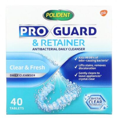 Описание Очистить и СвежиеЕжедневное очищающее средствоУбивает 99,99% бактерий, вызывающих неприятный запах *Подтягивает пятна, устраняет обесцвечиваниеБережно очищает бытовую технику * Crystal Clear Кристально чистая технологияВаш полость рта требует особого ухода Polident Pro Guard и Фиксатор с технологией Crystal ClearЕго нежный и неабразивный состав убивает бактерии, вызывающие неприятный запах, помогает удалять пятна и сохраняет чистоту и свежесть чистоты.Преимущества очистки с Polident Pro Guard и Фиксатор?Polident Pro Guard и Доказано, что уникальный состав ретейнера с технологией Crystal Clear помогает поддерживать чистоту ретейнера, элайнера или гарды и прозрачный. Таким образом, вы сможете с уверенностью показать свою улыбку.Поддержание чистоты во рту — важная составляющая здоровья полости рта. Используйте Polident Pro Guard и Наносите средство для ежедневного очищения на каждый день в соответствии с рекомендациями. Будьте уверены, что ваш ротовой полости чистый, свежий и яркий.Протестировано для использования с некоторыми съемными приспособлениями для полости рта, такими как:Выравниватели КапыОчистить ретейнерыЗащита от десен Проводные ретейнерыНочные стражиСпортивная охранаСъемные брекеты* По результатам лабораторных исследований. Рекомендации по применению Важно. Прочтите все инструкции перед использованием.Руководство для ежедневного использования1. Бросьте один Polident Pro Guard и Поместите таблетку очищающего средства в достаточно теплую (не горячую) воду, чтобы покрыть ротовую полость.2. Оставьте на 3-5 минут. Для достижения наилучших результатов аккуратно почистите рот чистящим средством с помощью мягкой щетки. Выбросьте оставшийся раствор сразу после использования.3. Тщательно промойте прибор проточной водой. Ингредиенты Бикарбонат натрия, лимонная кислота, моноперсульфат калия, карбонат натрия, перекись карбоната натрия, ТАЭД, бензоат натрия, ПЭГ-180, лаурилсульфата натрия, ВП/ВА сополимер, ароматизатор, целлюлозная камедь, нитрит натрия, fd c синий 2, голубое 1 оз. Предупреждения Прочтите все инструкции перед использованием.Таблетки & решение в недоступном для детей и лиц, подверженных риску случайного проглатывания.Не кладите таблетки или раствор в рот.Не пейте очищающий раствор и не используйте его в качестве жидкости для полоскания рта.Тщательно смывайте.Не используйте, если вы чувствительны к какому-либо из ингредиентов. Может вызвать аллергическую реакцию. При появлении раздражения следует прекратить использование и обратиться за медицинской помощью. При проглатывании. Обратитесь в токсикологический центр или к врачу.Не касайтесь рта или глаз после работы с таблетками или раствором.После работы с таблеткой или раствором тщательно мойте руки.Вызывает серьезное раздражение глаз. При попадании в глаза: осторожно промыть их водой в течение нескольких минут. Если раздражение глаз не проходит, обратитесь за медицинской помощью.Внутренняя упаковка с функцией защиты от вскрытия. Не используйте, если запе…