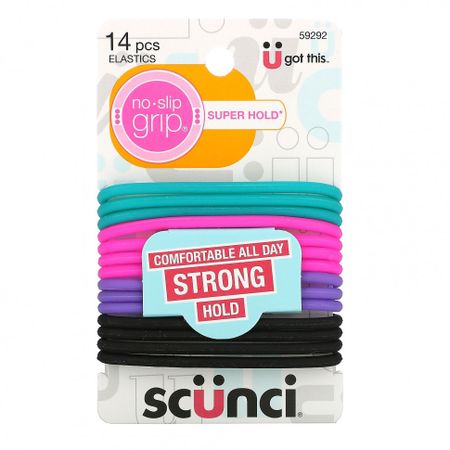 Scunci, Тугие резинки для волос Everyday & Active, No Slip Grip, 14 штук