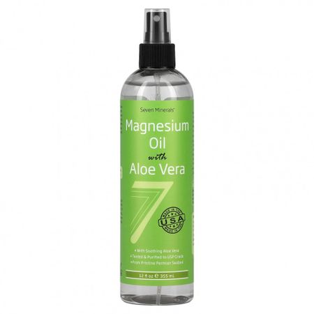 Магниевое масло Seven Minerals с алоэ вера — одно из магниевых масел высочайшего качества. Добывается в чистом виде на дне Пермского дна, возраст которого составляет 250 миллионов лет, на юге США. Очищенное и протестированное на соответствие стандартам USP, алоэ вера успокаивает кожу, делая ее мягкой и эластичной, придавая ей здоровое сияние. Рекомендации по применению Распылите масло на ступни и ноги перед сном. Используйте ежедневно до или после купания.Обильно нанесите массажными движениями на любую больную область. Используйте его по мере необходимости.