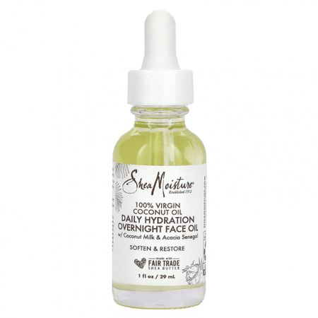 SheaMoisture, 100% кокосовое масло первого отжима, масло для ежедневного увлажнения на ночь, 29 мл (1 жидк. Унция)