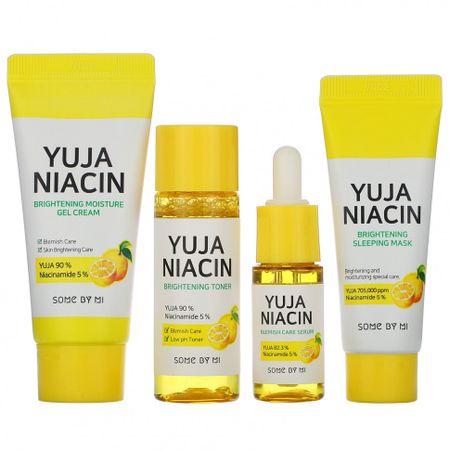 Философия SOME BY MISOME BY MI — заметное улучшение тона кожи благодаря натуральным ингредиентам.Стартовый набор для улучшения цвета кожи:Тоник. Содержит 90% экстракта юдзу для питания и увлажнения кожи. Восстанавливает раздраженную кожу с помощью 12 витаминов и экстракта цветка лотоса. Сыворотка. Содержит 82% экстракта юдзу для осветления и увлажнения кожи. Благодаря невесомой текстуре сыворотка легко впитывается и не оставляет ощущения липкости. Крем-гель. Содержит 90% экстракта юдзу для питания и увлажнения кожи. Восстанавливает кожу благодаря 10 витаминам и охлаждает ее ледниковой водой. Ночная маска. Содержит 70% экстракта юдзу для питания и увлажнения кожи. Увлажняет кожу благодаря формуле Aquaxyl и фруктану, восстанавливает кожу благодаря 10 витаминам.