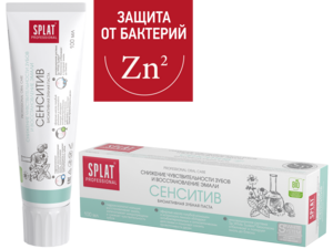 Антибактериальная зубная паста SPLAT SENSITIVE для снижения чувствительности зубов и восстановления эмали, 100 мл. Снижение чувствительности зубов и восстановление эмали.Защита от бактерий!*Эффективная укрепляющая зубная паста для людей с повышенной чувствительностью зубов.Эффективно расщепляет зубной налет и делает поверхность зубов идеально гладкой благодаря сочетанию натурального фермента из папайи (Papain) с высокомолекулярным отбеливающим компонентом Polydon®. Инновационная система Sp.White System® безопасно отбеливает и полирует эмаль до блеска.Эффект: — Восстанавливает эмаль, восполняет потерю минералов и снижает чувствительность зубов благодаря гидроксиапатиту кальция (nHap). Эффективность доказана клинически.- Снижает кровоточивость десен благодаря эфирным маслам ромашки и испанского лимона.- Обладает антиоксидантным действием и защищает от бактерий благодаря витаминам С, РР, Е, флавоноидам и компоненту Biosol.Новая BIO-формула.