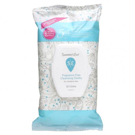 Summer’s Eve, Очищающие салфетки 5 в 1, без отдушек, 32 салфетки