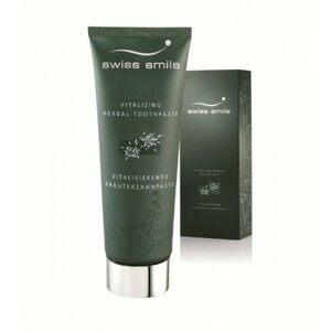 Витаминно-травяная зубная паста swiss smileВитаминно-травяная зубная паста 75 мл.Назначение: зубная паста с 4% содержанием натуральных травяных экстрактов и витамина Е для поддержания здоровья десен.Сила трав: Драгоценные лечебные свойства эдельвейса в сочетании с эхинацеей, экстракты зеленого чая и чистый хлорофилл растений. Драгоценная и сбалансированная формула укрепляет чувствительные зубы и нежные десны. Эдельвейс, эхинацея и противовоспалительные свойства зеленого чая восстанавливают бактериальный баланс, а также восстанавливают поврежденные ткани десен. Кроме того, эдельвейс богат природными биофлавоноидами, которые обладают антиоксидантными свойствами, нейтрализуя свободные радикалы. Хлорофилл надежно удаляет неприятные запахи и в сочетании с нежным ароматом мяты, обеспечивает свежее дыхание на длительный срок. Изысканное сочетание ингредиентов не содержит SLS, обеспечивает надежную защиту полости рта и десен, помогает поддерживать здоровую микрофлору полости рта.Рекомендована: для профилактики кариеса для взрослых и подростков с 16 лет для чувствительной эмали для укрепления зубной эмали для укрепления десен после профессиональной гигиены для ночного воздействия на полость рта для удаления неприятного запаха изо рта для поддержания здоровой микрофлоры полости ртаОбеспечивает SPA уход всей полости рта: очищает поверхность зубов, ухаживает за слизистой полости рта, укрепляет чувствительные зубы и успокаивает нежные десны, эссенции швейцарских трав активируют процессы восстановления мягких тканей в ночное время, эдельвейс, эхинацея, крапива и противовоспалительные свойства зеленого чая восстанавливают бактериальный баланс, а также восстанавливают поврежденные ткани десен, эдельвейс богат природными биофлавоноидами, которые обладают антиоксидантными свойствами, нейтрализуя свободные радикалы, ментол надежно удаляет неприятные запахи изо рта, обеспечивает свежее дыхание на длительный срок.