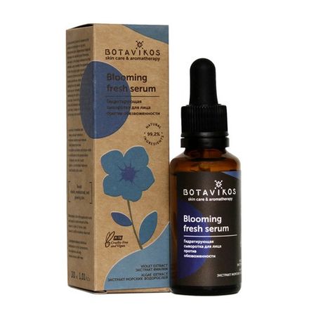 Гидратирующая сыворотка против обезвоженности BLOOMING FRESH для всех типов кожи, нуждающейся в дополнительном увлажнении.Витамин В3 — обладает прекрасными увлажняющими свойствами, и восстанавливает липидный барьер кожи.Гиалуроновая кислота — препятствует истончению кожи, повышает запасы влаги, сохраняет молодость и красоту кожи.Экстракт бурой морской водоросли — интенсивно увлажняет, повышает защитные свойства кожи, успокаивает.Экстракт фиалки — стимулирует процесс образования эпидермальной гиалуроновой кислоты, усиливают циркуляцию воды в кожи, значительно повышая уровень увлажненности и эластичности кожи.Экстракт морошки — мощное антиоксидантное действие, витаминизирует и возвращает здоровый, сияющий цвет лица.Эфирные масла лайма, мяты, здравца — освежают, очищают и улучшают цвет лица, предупреждают появление несовершенств, дарят ощущение свежести и выравнивают тон кожи.