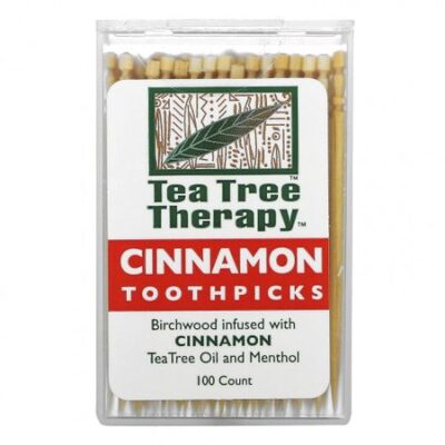 Зубная палочка из березы, ароматизированная корицей (масло кассии), австралийским маслом чайного дерева и ментолом. Березовая древесина с корицей, маслом чайного дерева и ментоломЗубочистки с корицей от Tea Tree Therapy изготавливаются из березовой древесины, обработанной маслом чайного дерева и ментолом. Корица (масло кассии) добавляется, чтобы обеспечить пикантный бодрящий аромат. Природные антисептические свойства масла чайного дерева помогают освежить дыхание и убить бактерии, которые вызывают зубной налет и зубной камень. Их длительный аромат может помочь курящим людям.