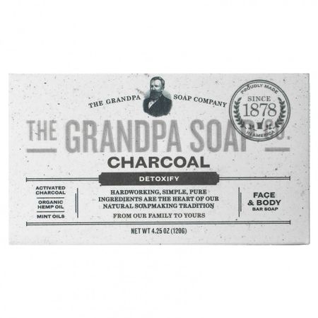 Главная » Красота и здоровье The Grandpa Soap Co., Кусковое мыло для лица и для тела, антитоксичное, с древесным углем, 4,25 унции (120г) Просмотров 3 Грэндпа