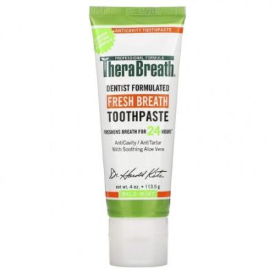 Описание Профессиональное средствоФормула более длительного действияРазработано стоматологом для устранения неприятного запаха изо рта, язв во рту, а также для белизны зубовСвежее дыхание более 24 часов*Средство против кариеса и зубного камняУспокаивающее алоэ вераСертифицированный кошерный продуктВеганский продукт, сертифицированный AVAПреимущества продуктаСочетание кислорода и алоэ вера очищает и осветляет зубы, не содержит агрессивных абразивов, устраняя при этом источник неприятного запаха изо рта. Для достижения наилучших результатов используйте два раза в день с ополаскивателем для полости рта TheraBreath.Наша историяДоктор Гарольд Кац (Harold Katz) создал средство TheraBreath в 1993 году, чтобы помочь своей дочери избавиться от неприятного запаха изо рта, потому что ничто другое не помогало. С тех пор миллионы людей обрели уверенность в себе, перейдя на средства TheraBreath для повседневного ухода за полостью рта.Назначение. Способствует профилактике кариеса.* Чтобы обеспечить свежесть дыхания в течение 24 часов, чистите зубы зубной пастой TheraBreath дважды в день. Для достижения наилучших результатов используйте 2–3 раза в день в рамках ежедневного ухода за полостью рта со средством для полоскания полости рта TheraBreath. Совместное использование зубной пасты TheraBreath и ополаскивателя для полости рта обеспечивает запатентованный процесс насыщения кислородом для максимального устранения неприятного запаха. Рекомендации по применению Нанесите зубную пасту TheraBreath на сухую зубную щетку и чистите зубы, язык и небо в течение 2 минут.Для достижения наилучших результатов используйте 2–3 раза в день в рамках ежедневного ухода за полостью рта в сочетании с ополаскивателем для рта TheraBreath. Сочетание зубной пасты с ополаскивателем TheraBreath создает запатентованную оксигенацию для максимально эффективной борьбы с запахом изо рта.Взрослые и дети от 2 лет: тщательно чистить зубы, желательно после каждого приема пищи (или не менее 2 раз в день), или в соответствии с рекомендациями стоматолога или терапевта. Обучите детей в возрасте до 6 лет навыкам чистки и полоскания (чтобы свести к минимуму количество проглатываемой зубной пасты). Наблюдайте за детьми по мере необходимости, пока они не смогут чистить зубы самостоятельно. Дети до 2 лет: проконсультируйтесь у стоматолога или терапевта. Ингредиенты Сведения о действующих веществах Активный ингредиент Назначение Фтористый натрий 0,24% Фторсодержащая зубная паста для защиты от кариеса Вспомогательные ингредиенты: