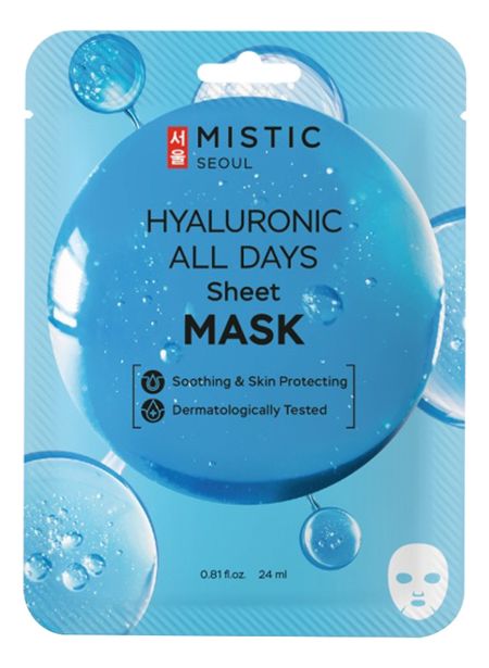 Главная » Красота и здоровье Тканевая маска для лица с гиалуроновой кислотой Hyaluronic All Days Sheet Mask 24мл Просмотров 10 MISTIC