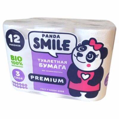 Туалетная бумага Panda Smile 3 слоя 12 рулонов