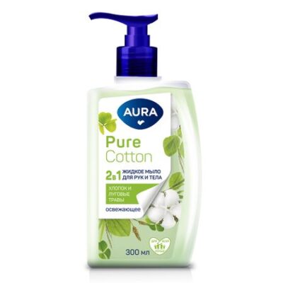 Главная » Красота и здоровье Жидкое мыло 2в1 Aura для рук и тела хлопок и травы 300 мл Просмотров 11 AURA