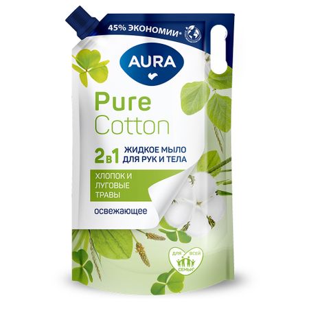 Главная » Красота и здоровье Жидкое мыло 2в1 Aura для рук и тела хлопок и травы 850 мл Просмотров 7 AURA