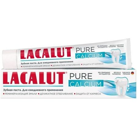 Зубная паста LACALUT PURE CALCIUM c натуральной водой из цветков липы. Кальций реминерализует эмаль зубов, фторид защищает от кариеса.Мягкие абразивы устраняют пигментированный зубной налет и сохраняют естественную белизну зубов.