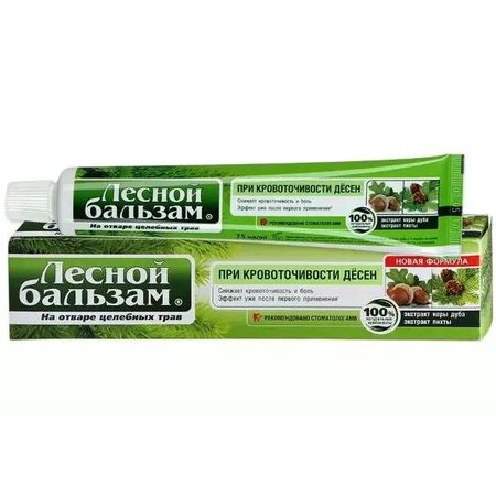 Зубную пасту Лесной бальзам рекомендуется использовать при первых признаках кровоточивости и воспаления десен. Экстракт коры дуба способствует устранению кровоточивости, укреплению кровеносных сосудов десен. Экстракт пихты благодаря антибактериальному действию препятствует развитию патогенных бактерий в полости рта. Отвар 5-ти целебных трав (ромашки, тысячелистника, зверобоя, чистотела и крапивы) укрепляет десны, обеспечивает дополнительную профилактическую защиту. По результатам клинических исследований зубная паста: снижает кровоточивость десен; устраняет болезненность десен у 100% потребителей; снижает риск повторных появлений симптомов заболеваний.