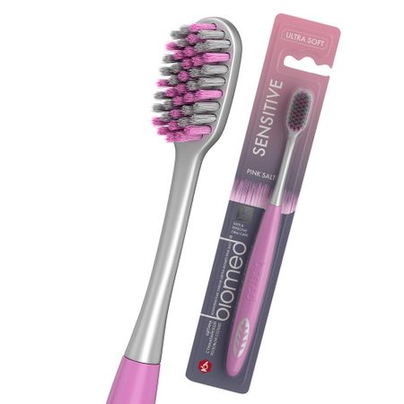 Зубная щетка Biomed® Pink Salt — забота о чувствительных зубах и деснах. Ультрамягкие щетинки обеспечивают деликатное очищение без повреждений эмали и десен. Щетина с гималайской солью нейтрализует кислый pH в полости рта, снижая риск развития кариеса. Утонченные кончики щетины бережно очищают придесневые участки и межзубные промежутки. Специальная форма головки облегчает доступ к труднодоступным местам. Влагостойкая и долговечная щетина сохраняет свои свойства и эффективность.