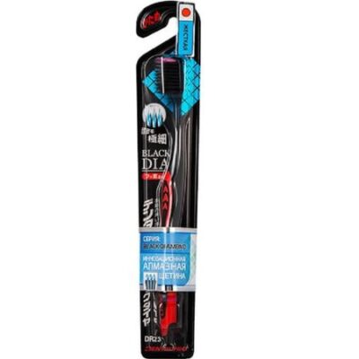 Зубная щетка Black Diamond качественно очищает зубы за счет сочетания двух новых видов щетинок: фторированных ультратонких щетинок алмазной формы и черных щетинок с добавлением платиновой коллоидной керамики. Ультратонкая фторированная щетина алмазной формы расположена на конце зубной щетки. Тонкие щетинки глубоко очищают межзубные промежутки и пришеечную зону, а специальная алмазная форма эффективно удаляет зубной налет. Фтор в составе щетинок укрепляет эмаль и уменьшает чувствительность зубов. Ультратонкая черная щетина с содержанием платиновой коллоидной керамики на 15% прочнее аналогов. Она эффективно удаляет налет, а также зубной камень. Ионы платины оказывают антибактериальный эффект – можно чистить зубы даже без зубной пасты.