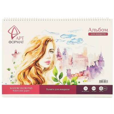 Альбомы-планшеты для акварели «АРТформат» пополнилась новым большим востребованным форматом А3 с внутренним блоком из 20 листов специальной фактурной акварельной бумаги плотностью 200 г/м2. Для внутреннего блока использована качественная белая плотная бумага для акварели, адаптированная под длительный контакт с водой, чего требует акварельная техника. Кроме того, такая бумага хорошо подойдет и для рисования пастелью. Скрепление листов на спирали с удобным для альбомов большого формата «блокнотным» расположением по верхнему краю и плотная картонная подложка-планшет обеспечивают комфорт во время работы. Изысканный воздушный дизайн обложки вдохновит на создание множества акварельных произведений. Теперь вся линия представлена четырьмя форматами: А3, А4 и А5, а также оригинальный, редкий квадрат 28х28 см.