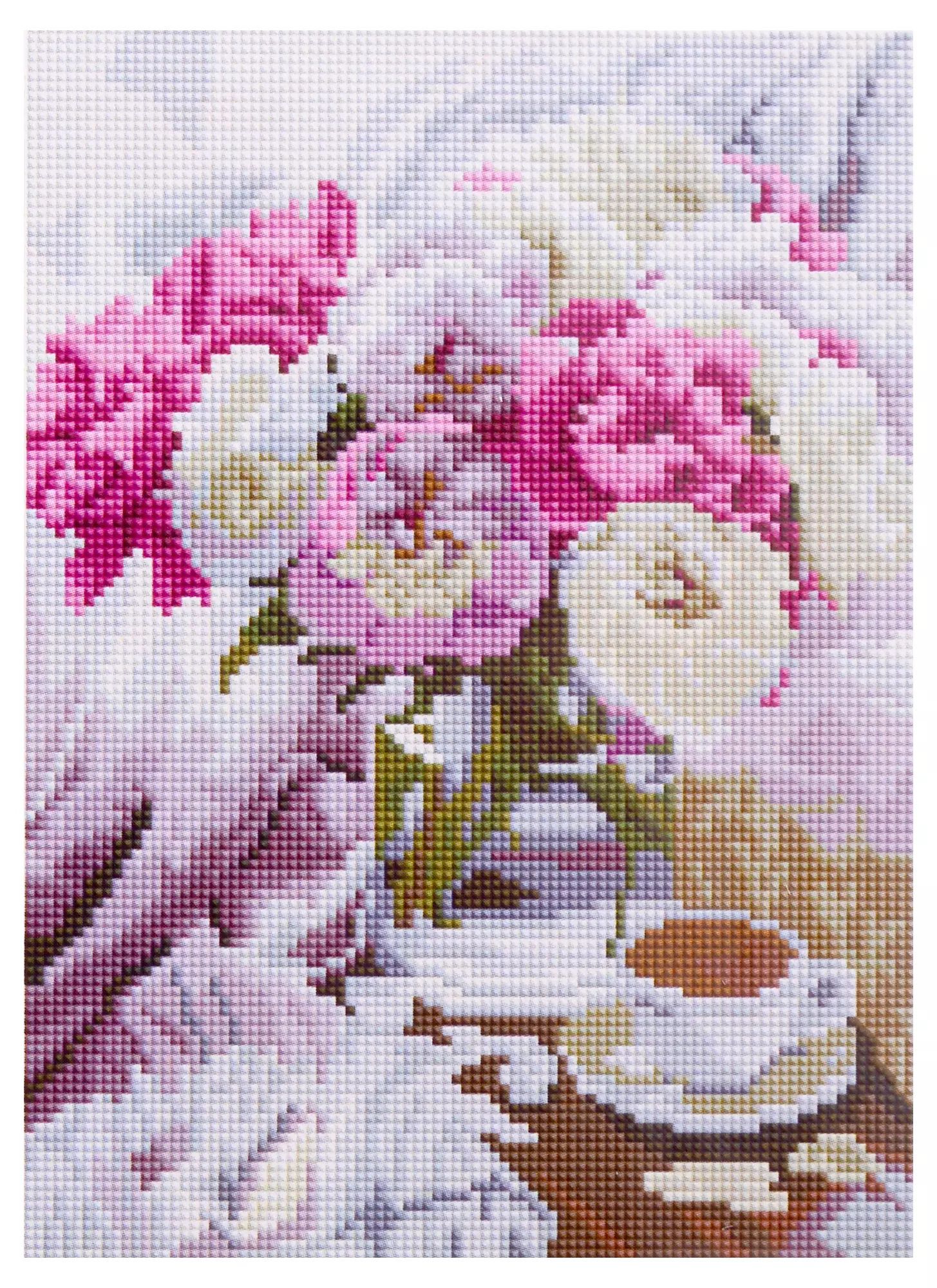 Алмазная мозаика на подрамнике "Утренний кофе и цветы", 30 х 40 см