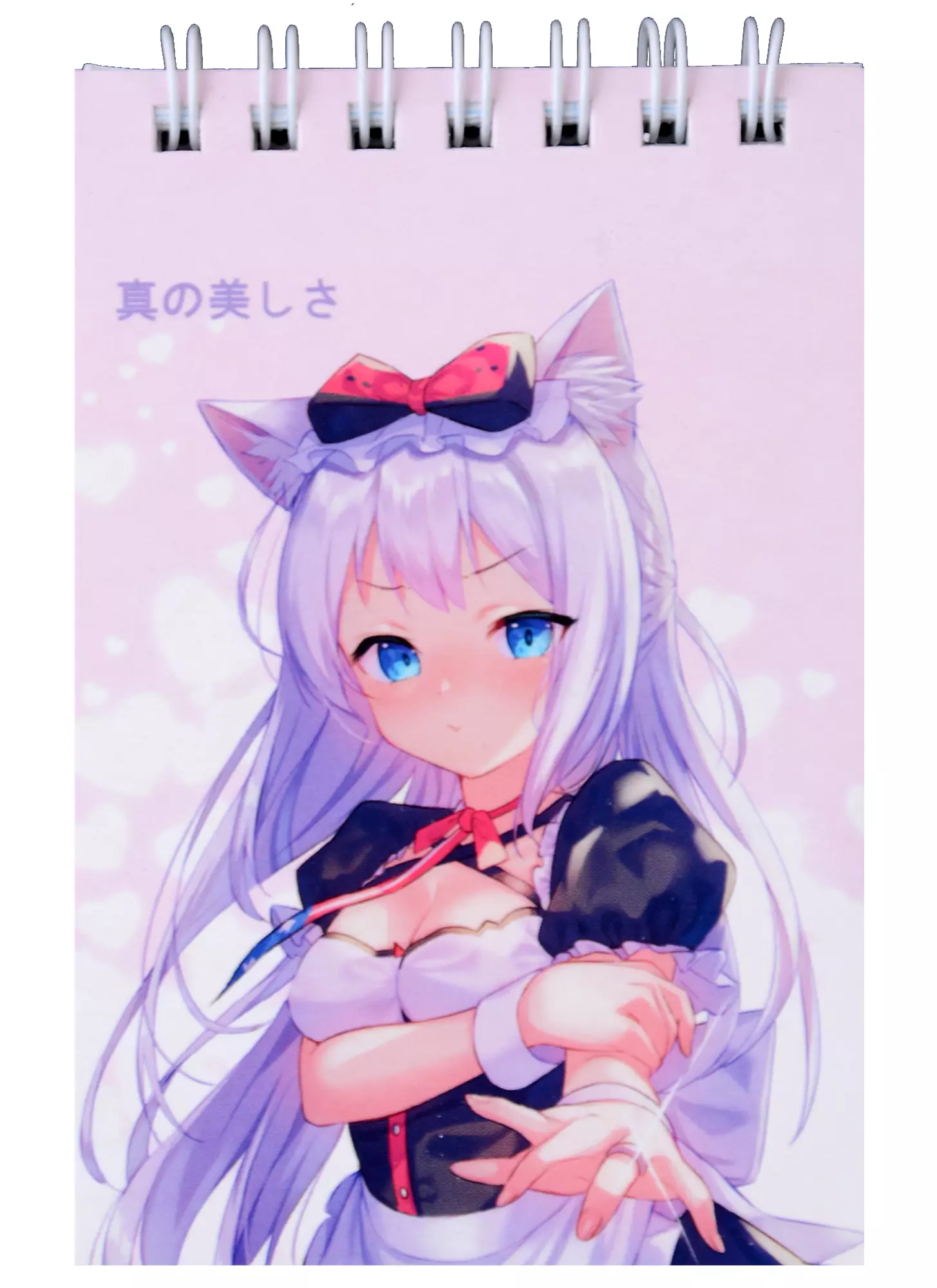 Блокнот А7 60л кл. "Аниме. Девушка с ушками (Сёдзё) (цветная)" спираль, УФ лак