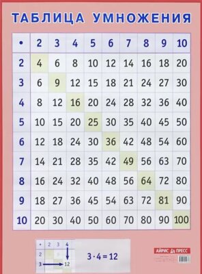 Плакат представляет собой красочно оформленную таблицу умножения. Может использоваться со всеми действующими учебниками математики для начальной школы.