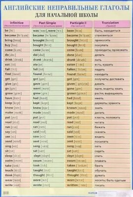На плакате представлены неправильные глаголы английского языка в соответствии с программой начальной школы. Львов В.