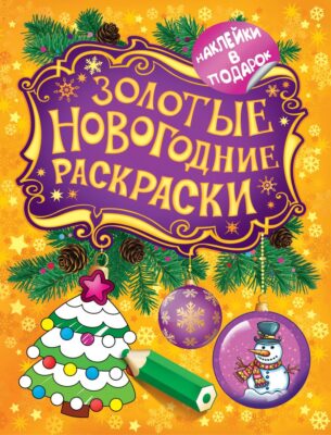Новогодние раскраски с наклейками. В подарок — блестящая елочная игрушка, которую можно вырезать и склеить. Мазанова Елена К.