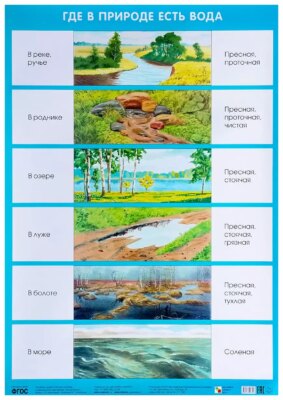 Плакат большого формата "Где в природе есть вода" издан в рамках учебно-методического комплекта к парциальной программе С.Н. Николаевой "