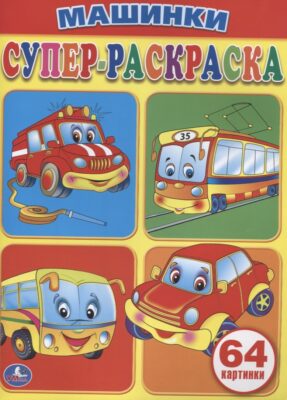 Раскрашивая картинки на страницах супер-раскраски "Машинки", малыш познакомится с разными автомобилями, запомнит, как выглядят трамвай, подъемный