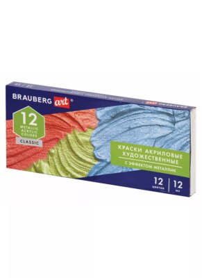 Краски акриловые 12цв 12мл художественные, металлик, тубы, BRAUBERG ART CLASSIC Подробнее