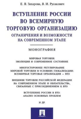 Монография представляет собой комплексное исследование теоретических и практических аспектов вступления России в ВТО, позволившее выработать научные и